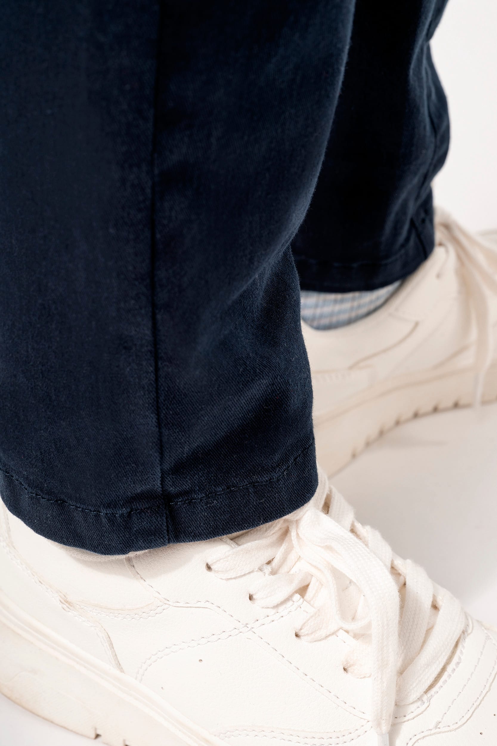 98% algodón / 2% elastano. Lavado enzimático. Cintura con trabillas. Bragueta con botón y cremallera de metal. Dos bolsillos delanteros con pespuntes. Dos bolsillos traseros ribeteados con pespuntes. Cintura interior elástica y ajustable. Tira interior de espiga a tono. Pespuntes en la entrepierna, en la parte delantera y trasera para mayor refuerzo. Acabado del dobladillo con pespunte simple. Sin etiqueta de marca, sólo una etiqueta extraíble con la talla para facilitar la personalización.